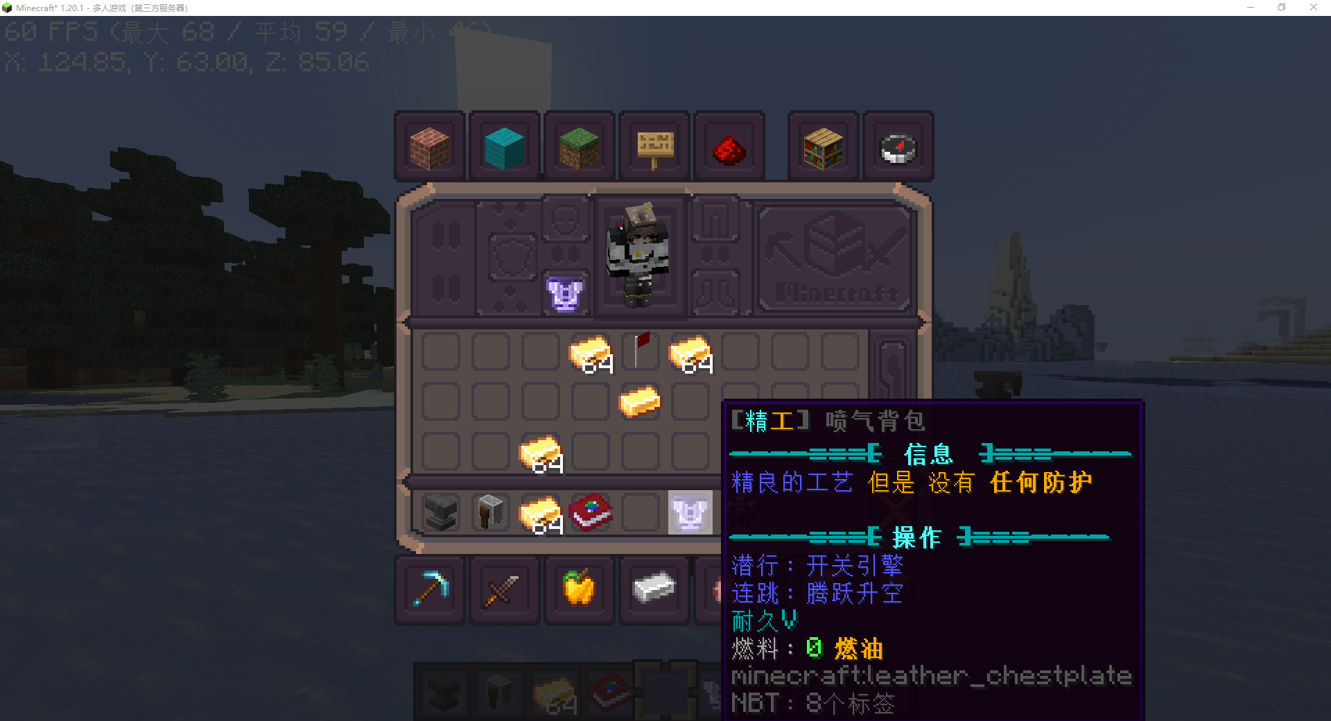 合成你的喷气背包吧!喷气背包完全可调整的lore,粒子效果和速度